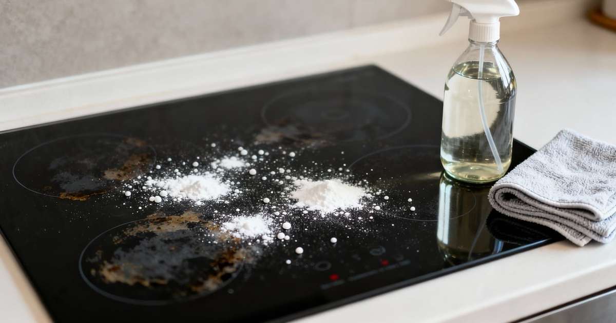 Aplique a mistura sobre a superfície fria do cooktop e deixe agir por dois minutos. Em manchas persistentes, polvilhe bicarbonato, borrife vinagre novamente e aguarde a espuma dissolver a sujeira.