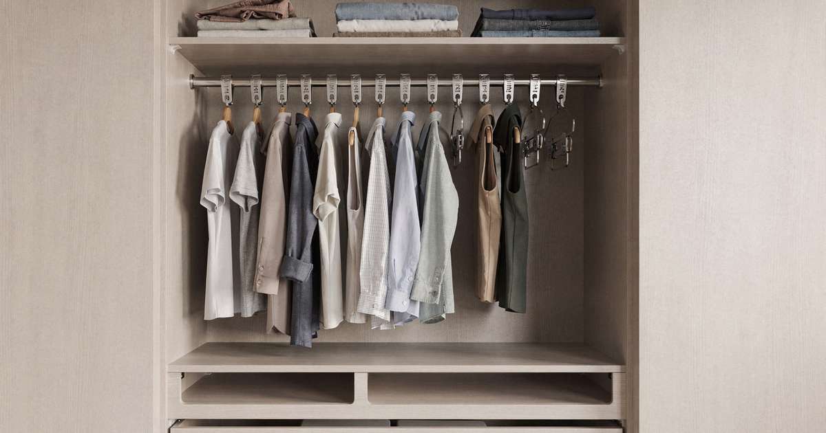 Por fim, utilize o segundo orifício do lacre para pendurar um segundo cabide logo abaixo do primeiro. Essa configuração vertical permite que você organize suas roupas de forma prática e economize espaço, além de facilitar a visualização das peças disponíveis no guarda-roupa.