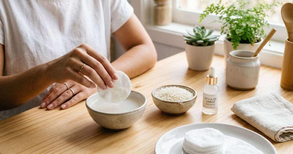 A preparação da água de arroz é um processo simples que começa com a lavagem do arroz cru em água corrente, descartando a primeira água. Em seguida, coloca-se o arroz em um recipiente limpo, cobrindo-o com água filtrada. Após um período de descanso que varia entre 20 e 30 minutos, durante o qual a água adquire uma coloração leitosa, o líquido é coado e armazenado. Essa 'água de arroz' é aplicada no rosto com algodão, deixada agir por alguns minutos antes de ser enxaguada, prometendo resultados como pele mais macia e aparência luminosa.